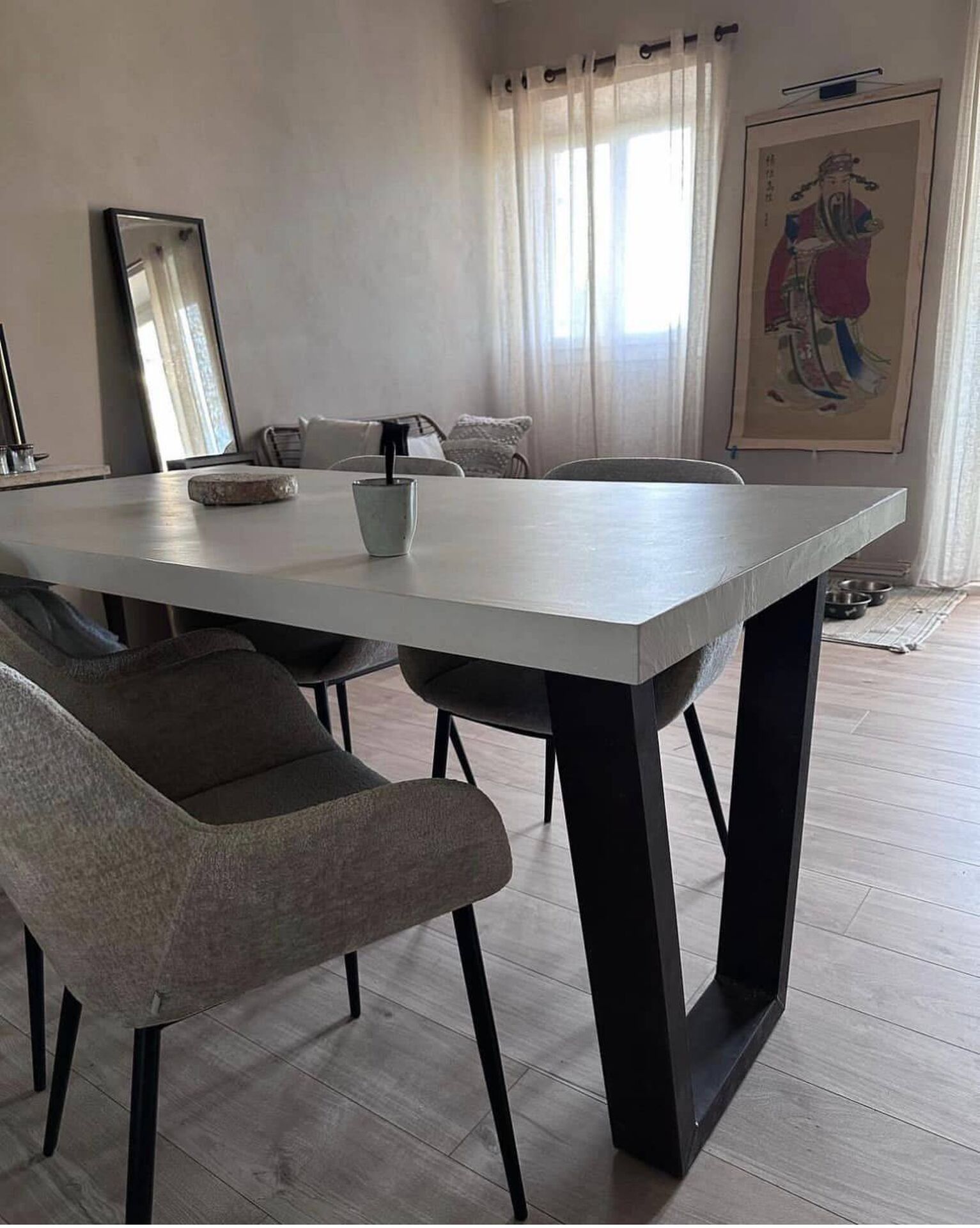 Matériaux TERRE DU MONDE Murs badigeon de chaux, Plateau béton cire, Pieds Metaldeco Réalisation Karoll Régence