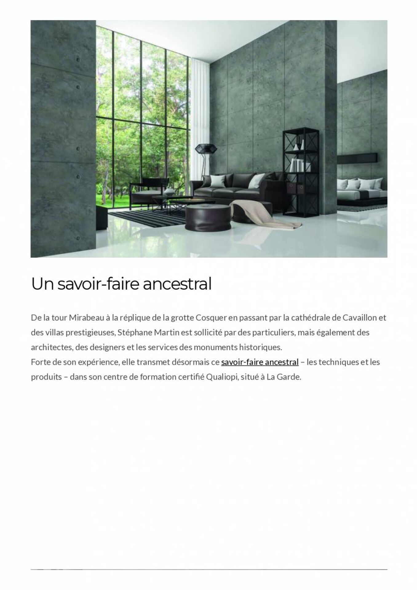 De la tour Mirabeau à la réplique de la grotte Cosquer en passant par la cathédrale de Cavaillon et des villas prestigieuses, Stéphane Martin est sollicité par des particuliers, mais également des architectes, des designers et les services des monuments historiques.